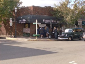 The picture above is what we saw once we parked the car (there’s a great lot across the street and so long as it isn’t Tuesday, or some odd deal, you can park there for free). And our noses were assaulted by the glorious smells from the Wyoming Meat Market.
