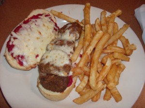 Me: Meatball Hoagie – Homemade meatballs topped with marinara and cheese blend on a toasted hoagie bun.