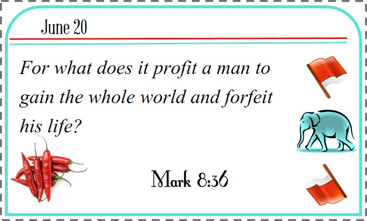 To continue in the Bible Verse calendar, here are downloads for the month of June in three versions, ESV, KJV, and NIV.