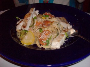 Our meals were the Fresh Pasta – with seasonal veggies, beurre blanc, and chicken and the Étouffée – chicken, homemade andouille sausage, dirty rice and garlic bread.