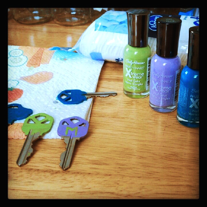 It seems as though people have decided I should be the keeper of their spare keys. As such, I have a hard time remembering which key belongs to which person (maybe they should rethink their strategy! lol). After seeing this Pinterest project, I decided it was high time to work it out myself. I really enjoy the colors and the polish seems to be staying on without much issue. For those keys that are unknown, maybe I should just start going around to everyone’s house and start trying out keys. Hmm…I think the middle of the night would be the best time, especially if they have dogs. 🙂