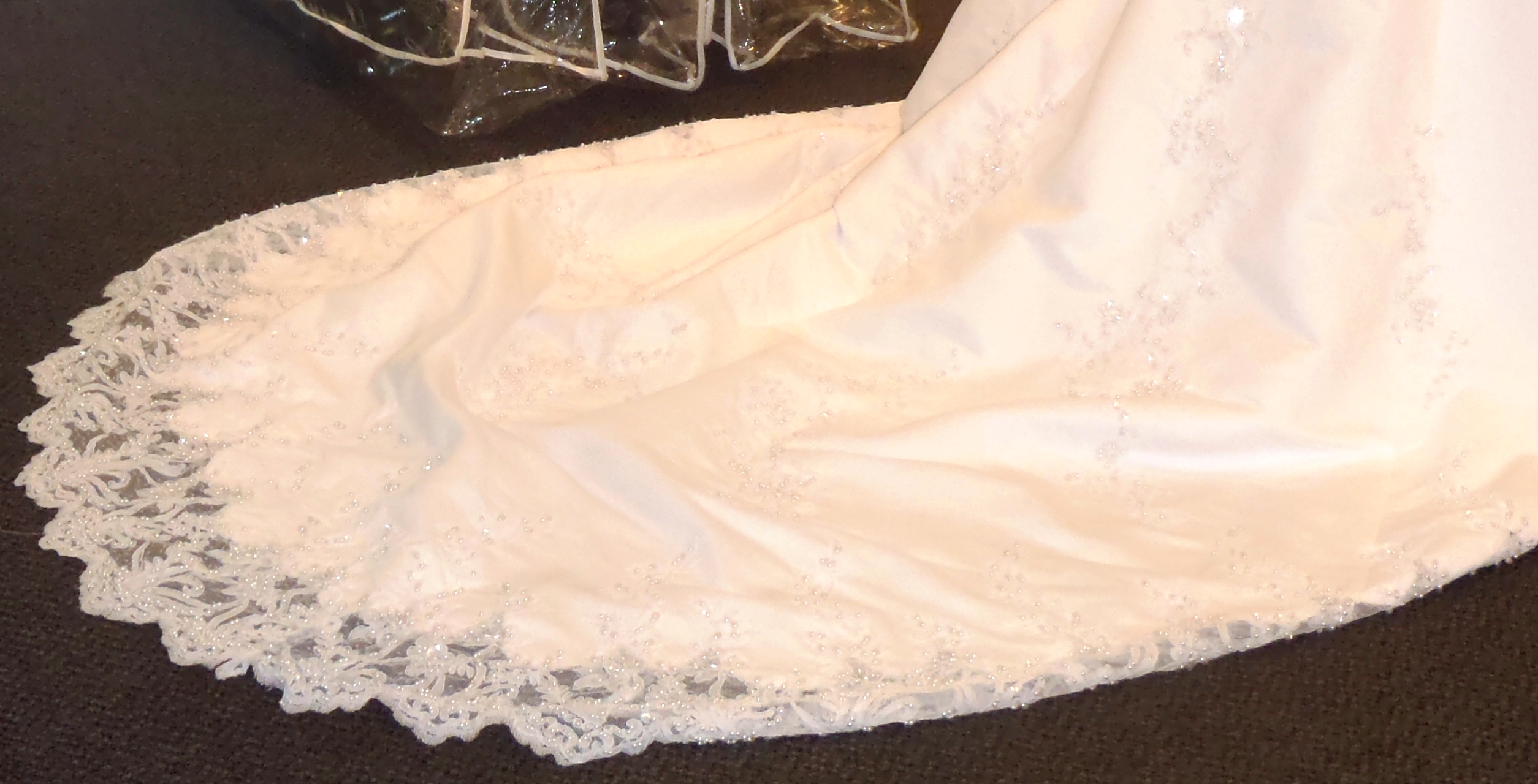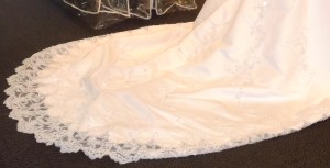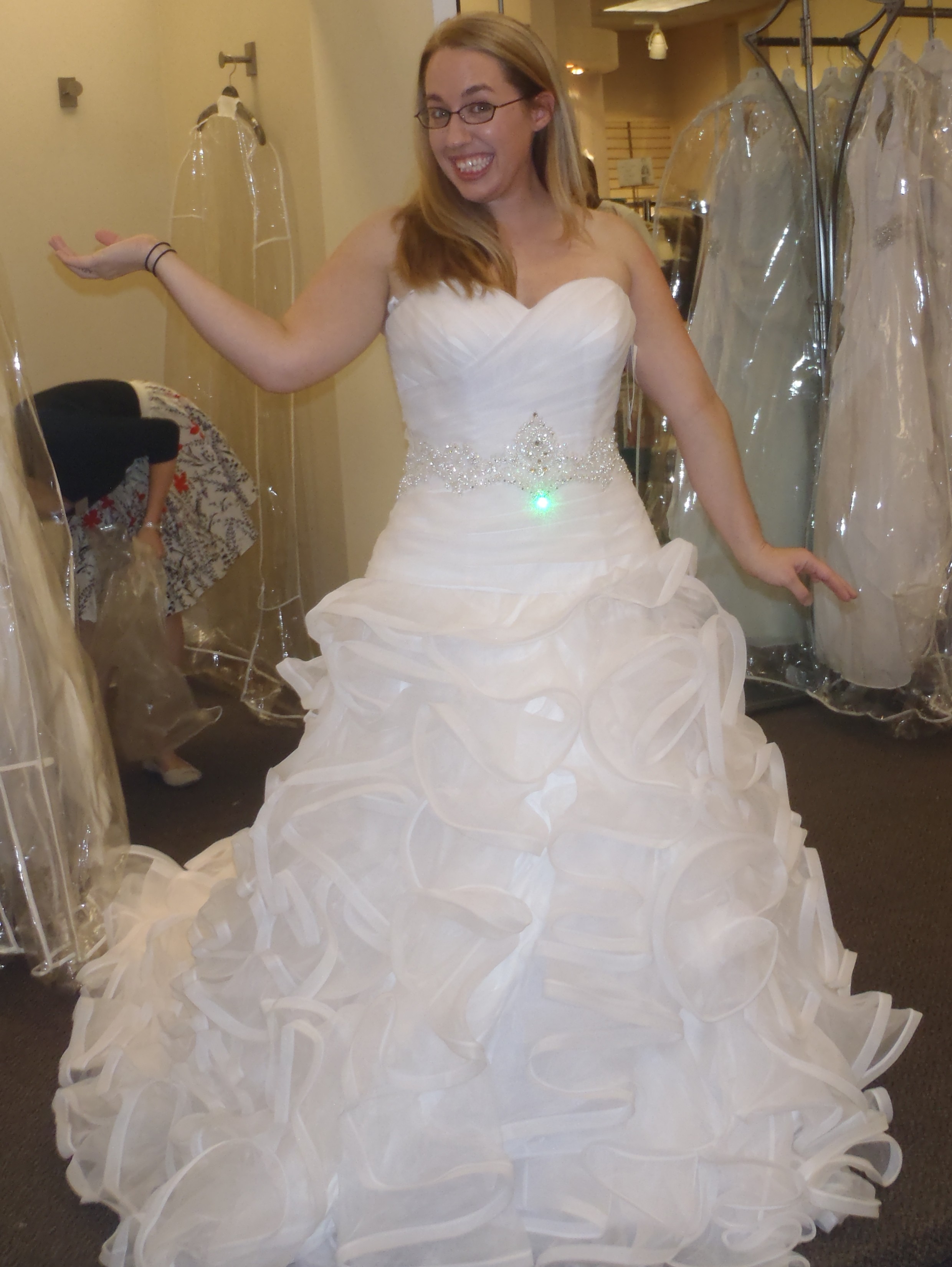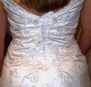 Who is this she? Her name is Grazina. From Lithuania and bearing a thick Eastern European accent – she was just what I wanted in a seamstress. When we bought the dress, we also bought a slip to go under it. It had tulle and a couple layers to make the dress poof out a bit more. When I tried it on for the fitting, Grazina decided that it was too much and found one with tulle only towards the bottom. It fit so much better. Alas, that one was also too long, so she will probably have to alter that as well. But, at least we didn’t have to pay for the second one; she let us swap out the first one.