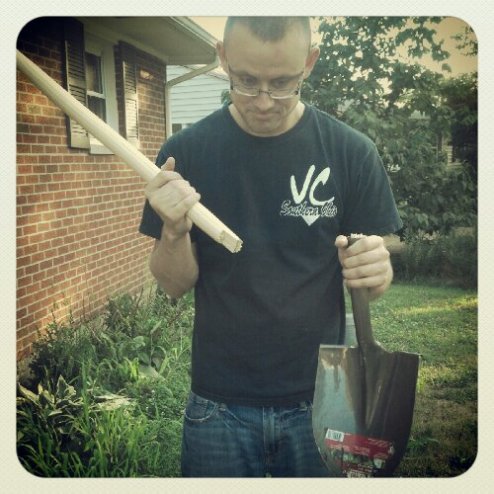 Last Fall, I planted a bunch of bulbs outside the front of The House. I have so many wonderful ideas for those garden beds. The biggest issue is that they don’t get much sun, and there isn’t much drainage. Oh, and about 12 ugly bush stumps spread fairly evenly throughout them. Those are going to HAVE to go. Matt and I dug up some weeds and were working on one of the shrubs the other day. After we finished, I asked if he felt any great satisfaction from it. He shrugged. Me, being the prophet that I am, balked and said, “You are fulfilling a command of God here! You were made and commanded to rule and subdue the earth and that’s just what you’re doing…doesn’t that bring you satisfaction? You are living to the full potential of who God made you to be!” He didn’t seem quite as impressed as I was. Go figure.