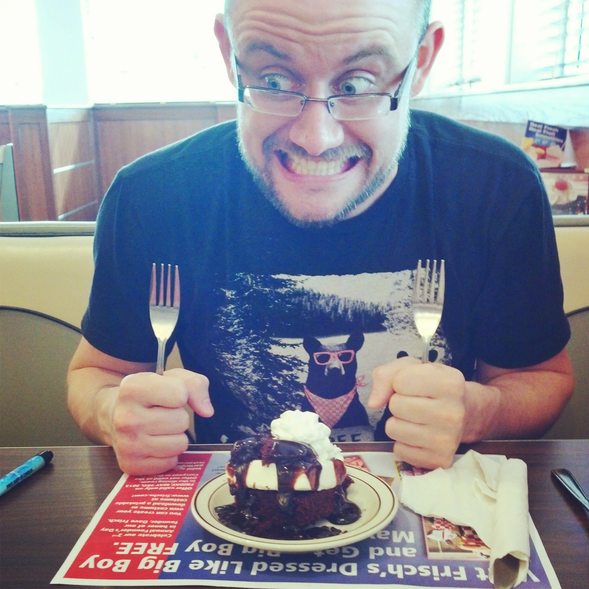 We met at a Frisch’s and decided to grab our dinner there. I had a kid’s meal…then Matt wanted dessert. The waitress was so sweet and brought out two forks for us to share, but I never had a chance.