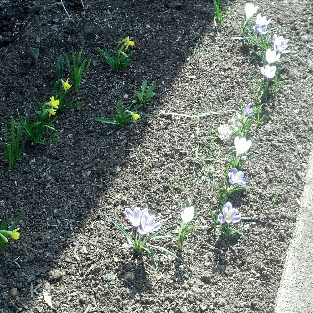 I’m starting to think that those daffodils are supposed to be that short and NOT because they get hardly any sun, but those crocuses are HUGE!