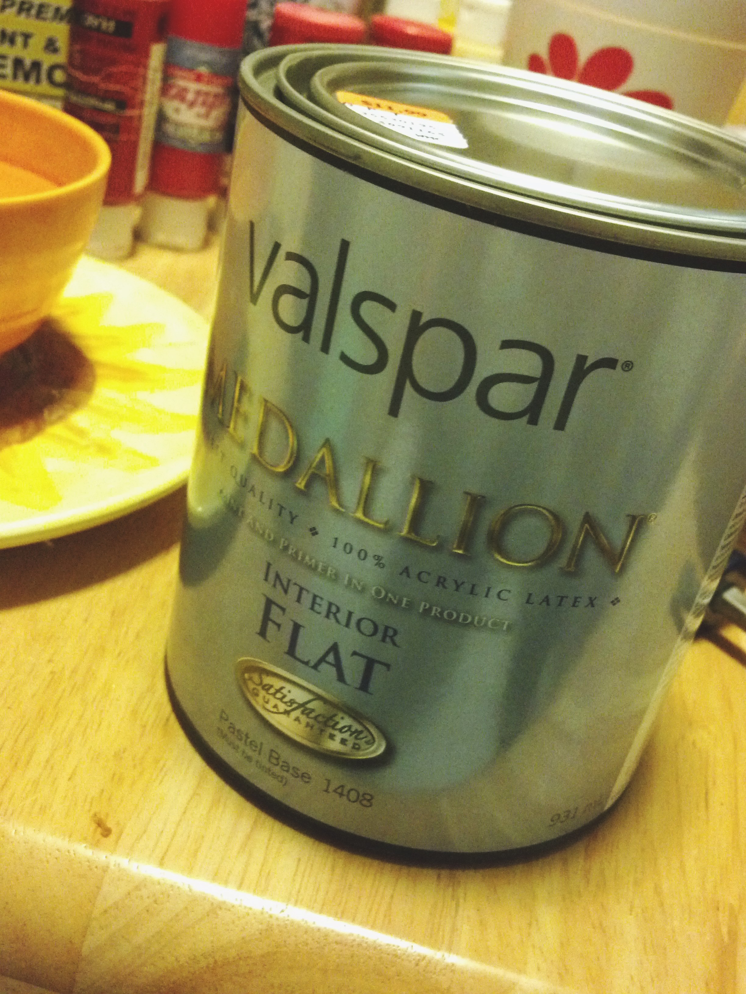 I can’t remember when I got it, but I know I had it through elementary school. That was when I was most into bunnies. Then I loved wolves. Then I loved elephants, and that’s been a regular thing since. But I wanted to incorporate this into the wedding and then into the house afterwards. That will take some tweaking post-wedding day, but in the meantime, I needed to prime this baby and get some paint on her. I like to use flat house paint as a primer. It’s what we used in art class in high school and the habit just stuck with me. When I pried open the lid of my small paint can, this is what I found.